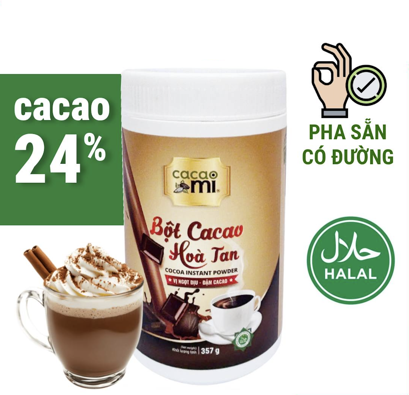 - Thành phần: bột cacao nguyên chất có đường